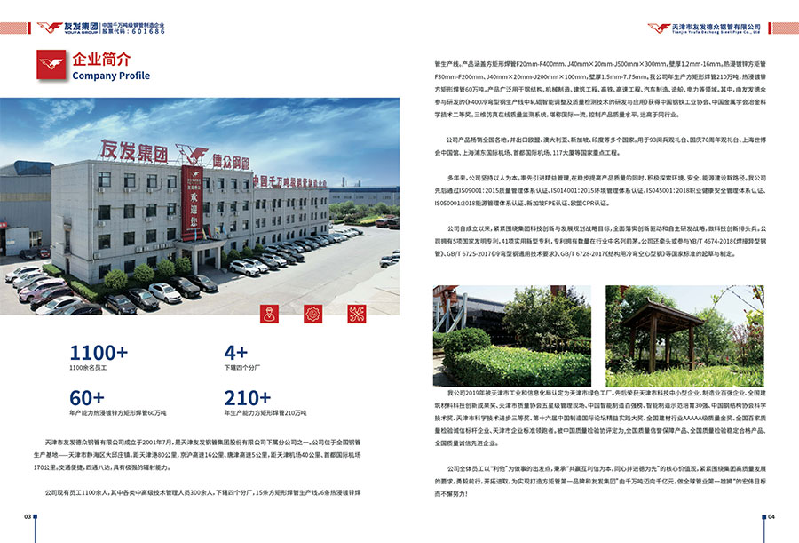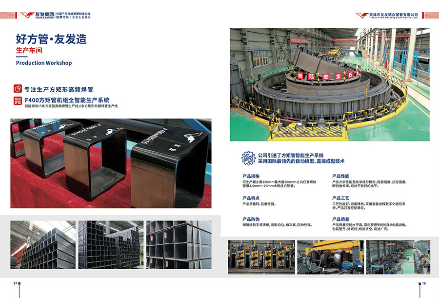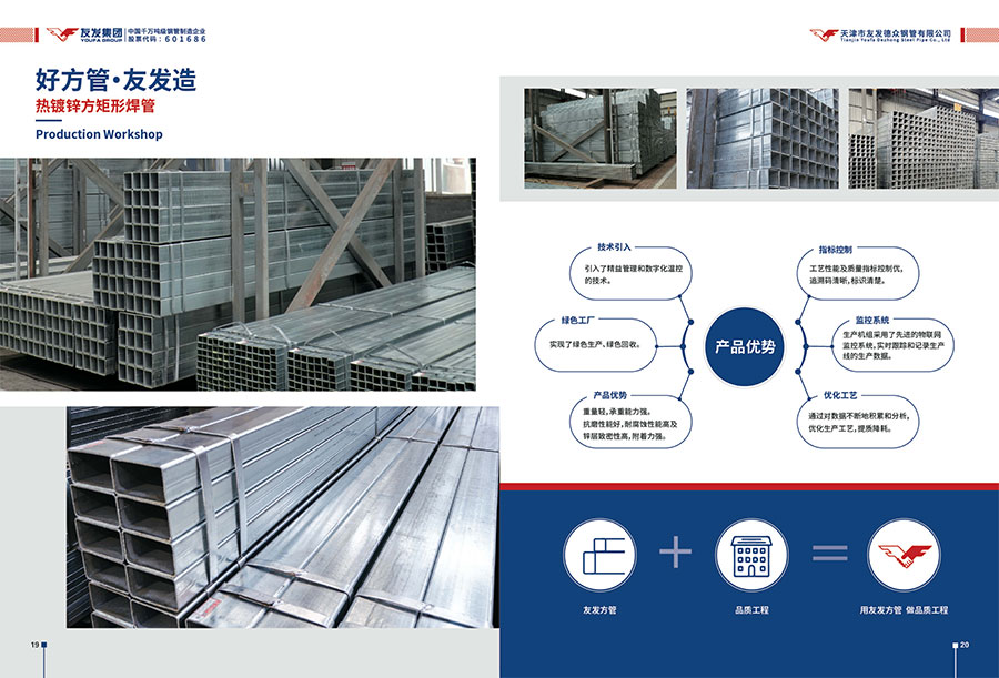 主要产品:友发牌冷弯空心型钢(方矩形焊管)、冷弯空心型钢(方矩形热镀锌焊管)