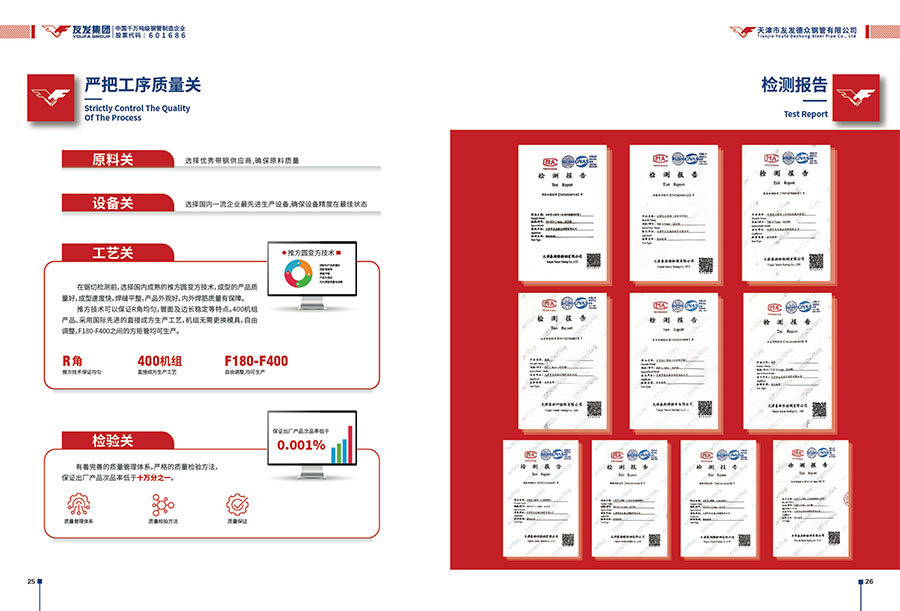 天津市友发德众钢管有限公司郑重承诺:企业将客观、科学、规范地遵守相关法律法规和质量标准要求,建立健全质量管理体系、完善质量档案,积极履行社会责任、重视质量发展、大力开展质量提升行动,切实做好关键过程质量控制、质量检验和计量检测、健全产品质量追溯体系等工作,持续着力提升质量水平,全力承担保障质量安全、履行质量担保责任及缺陷产品召回等法定义务的质量主体责任,适时以相关方式对企业的产品和服务标准进行必要的自我声明,依法承担质量损害赔偿责任,遵守市场秩序,维护公平竞争,切实维护消费者合法权益。