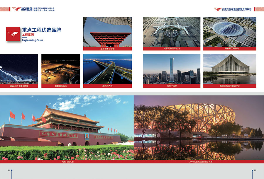 友发德众产品畅销全国各地,并出口欧盟、澳大利亚、新加坡、印度等多个国家。用于93阅兵观礼台、国庆70周年观礼台、上海世博会中国馆、上海浦东国际机场、首都国际机场、117大厦等国家重点工程。