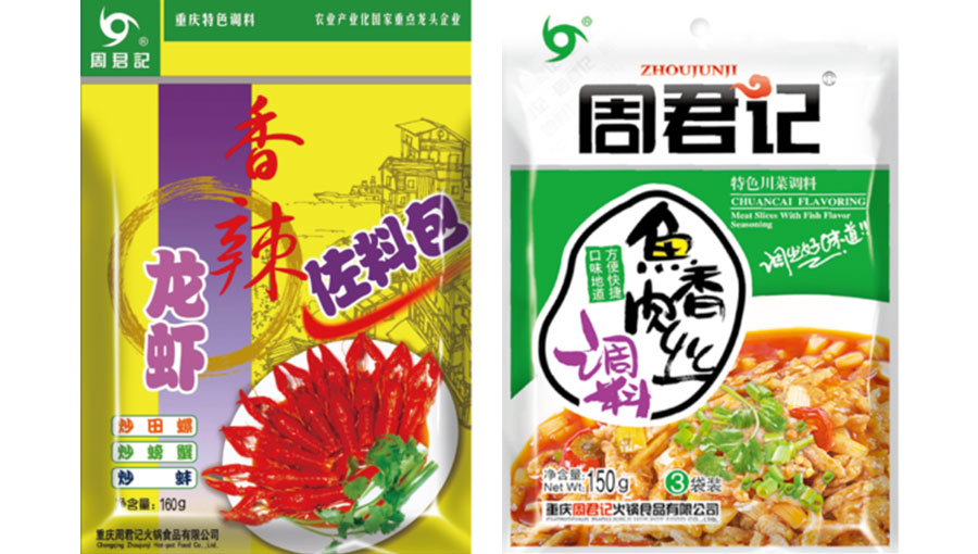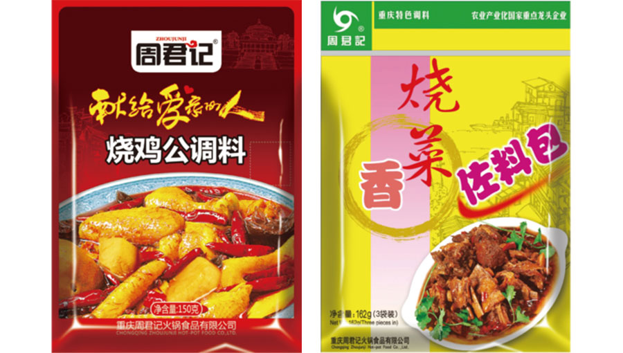 重庆周君记火锅食品有限公司主要以生产和销售“周君记”牌重庆火锅底料系列、麻辣香水鱼底料系列、拌菜香佐料系列、药膳滋补炖汤料系列、速溶增味营养火锅底料系列、川味菜、川味面调料等复合调料、免烧中国菜系列及休闲食品为主。在重庆、四川、中国香港以及全国的多个省市县地区有着多年的美誉,其产品已远销中国台湾、中国香港、欧美、日韩、东南亚、北美、澳洲等国家和地区。