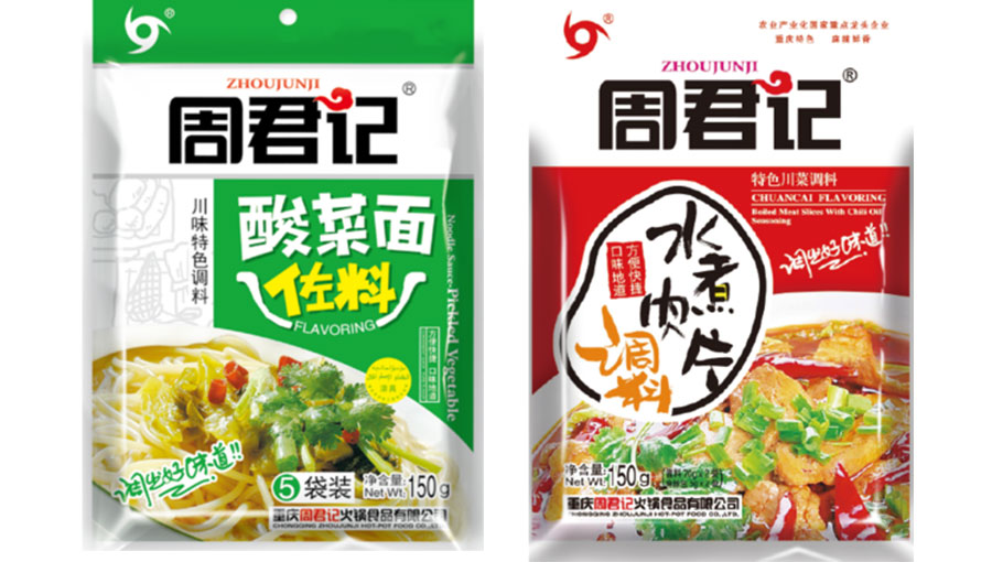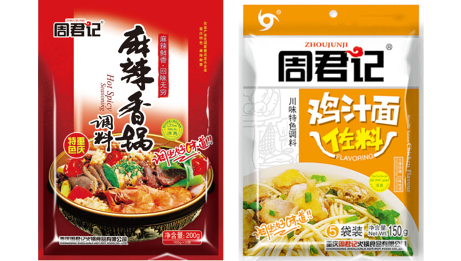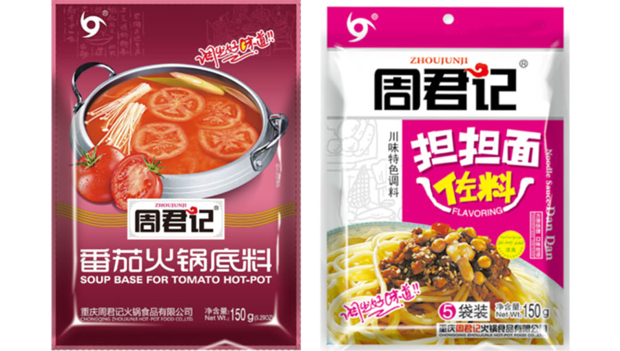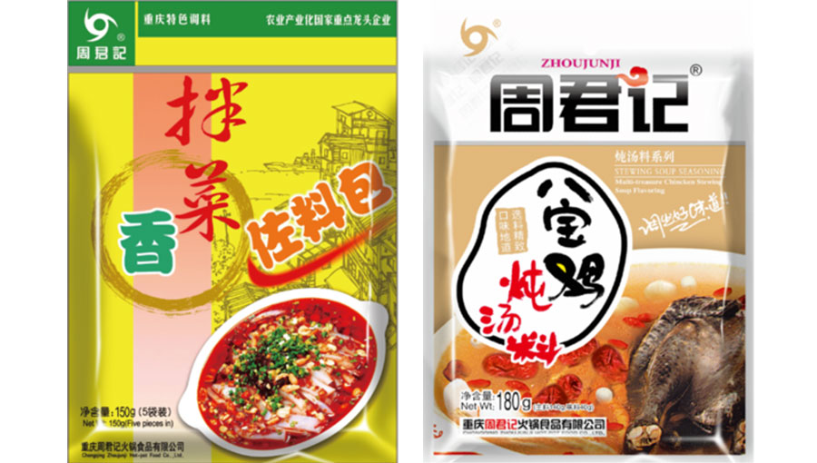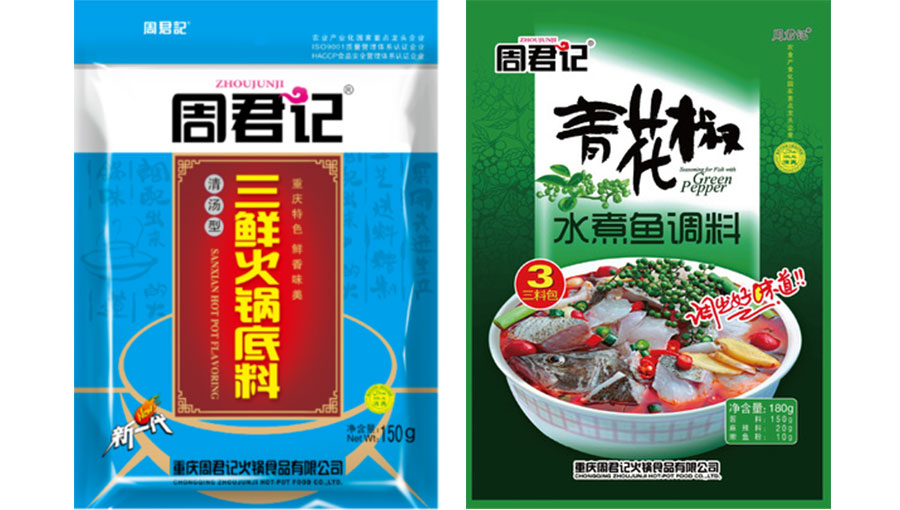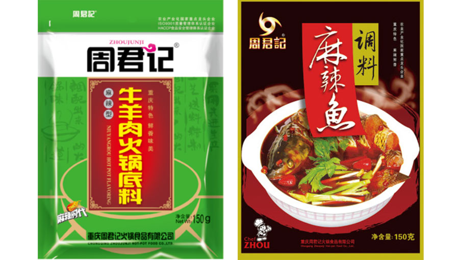 重庆周君记火锅食品有限公司,成立于1993年,现注册资金1100万元,是集科研、设计、生产、加工、销售为一体的专业火锅底料、复合调料生产企业。该公司主要以生产和销售“周君记”牌重庆火锅底料系列、麻辣香水鱼底料系列、拌菜香佐料系列、药膳滋补炖汤料系列、速溶增味营养火锅底料系列、川味菜、川味面调料等复合调料、免烧中国菜系列及休闲食品为主。在重庆、四川、中国香港以及全国的多个省市县地区有着多年的美誉,其产品已远销中国台湾、中国香港、欧美、日韩、东南亚、北美、澳洲等国家和地区。