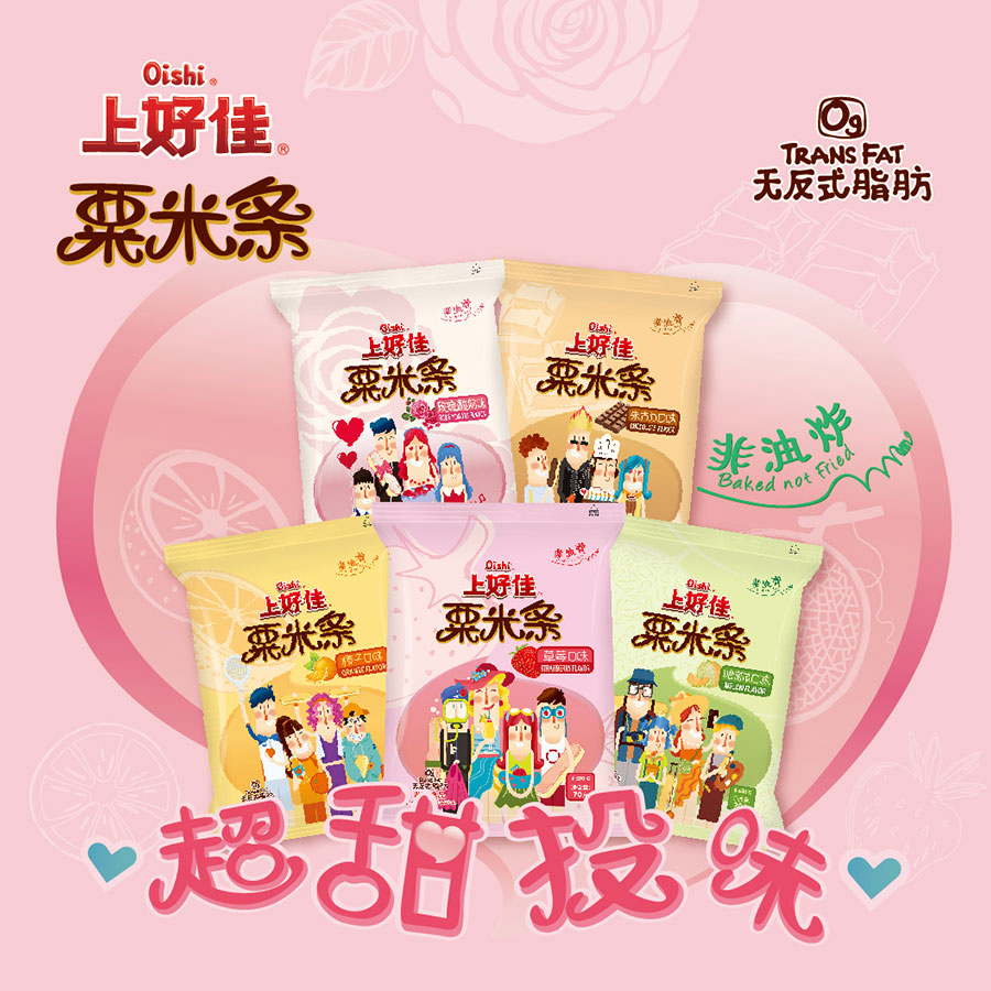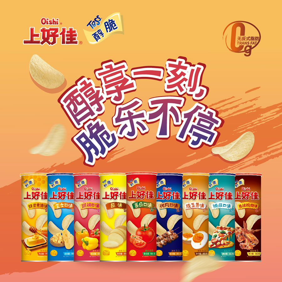 Oishi上好佳与“值得信赖”和“令人难忘的童年记忆”紧密相连。正如为本地化来设计产品和服务,上好佳始终在不同的文化和兴趣中创造共享的价值提供给上好佳广大的消费者。