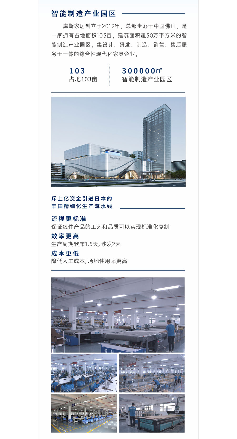皇朝整合全球优质资源,引进国内外先进的生产技术、设备及工艺,从开料、封边到自动喷涂,从烘干到缝纫、抛光打磨,精益求精,确保每一件家具产品的高品质。