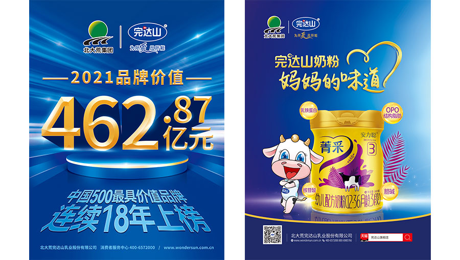 北大荒完达山乳业股份有限公司是伴随着1958年王震将军开发建设北大荒而诞生的,资产总额36亿元,北大荒完达山现有员工1.2万人,下辖20家分、子公司,年加工能力100余万吨,拥有菁采、元乳、诸葛小将、黑沃等明星产品,销售网络遍及全国。2021年,品牌价值达462.87亿元。七十年代,完达山首创大颗粒速溶奶粉制造工艺,从此使我国进入速溶时代;八十年代,完达山4次蝉联国家食品质量最高奖——国家银质奖章。乳品行业唯一的“中国绿色食品荣誉企业”,全国诚信体系建设首批首家乳制品试点评价通过单位,全国农业产业化重点龙头企业。