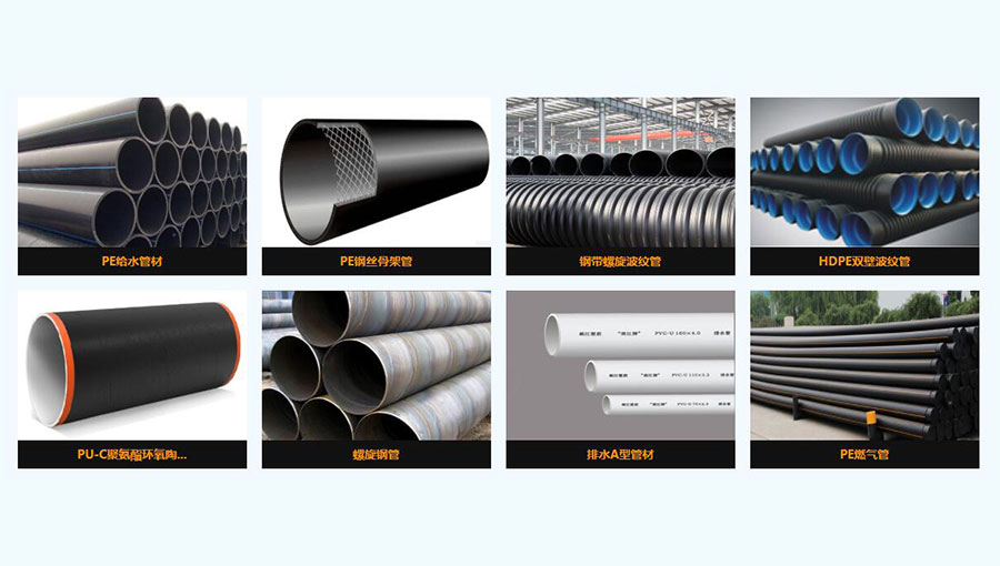 主要产品:“美江”牌PE、PP-R、PVC系列管材管件、离心球墨铸铁管、埋弧焊螺旋钢管等产品