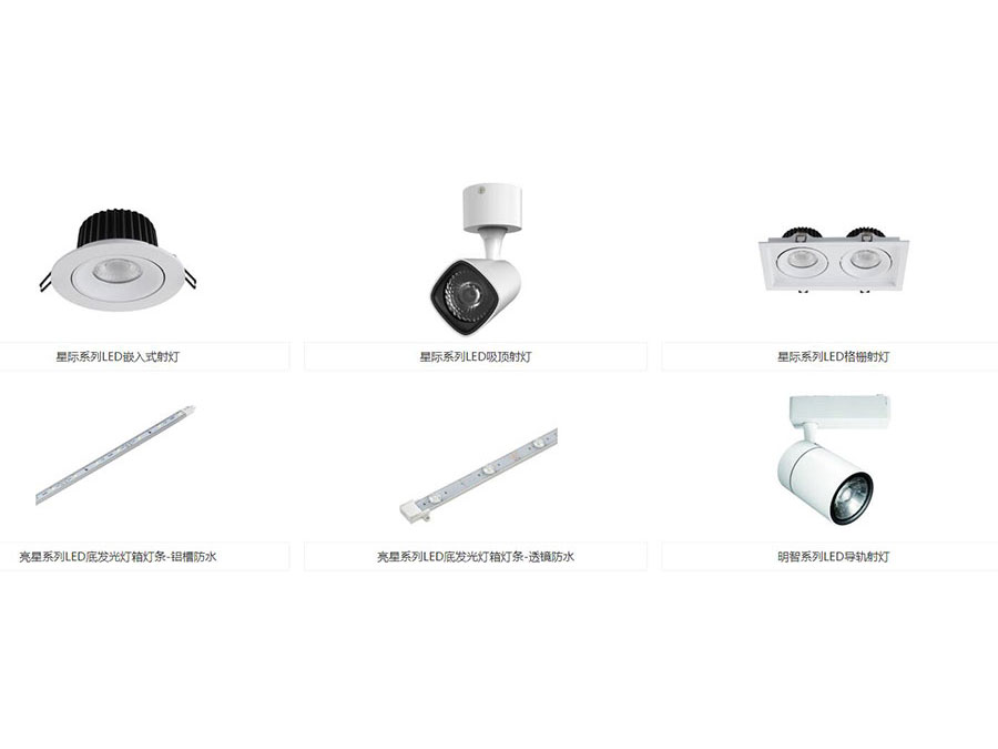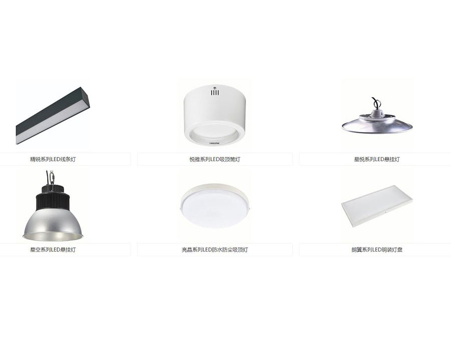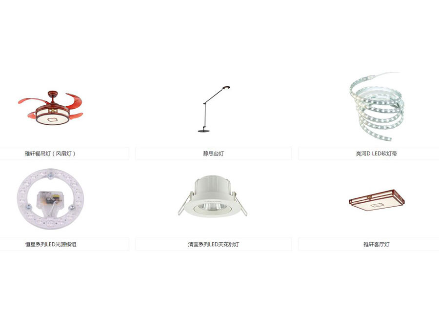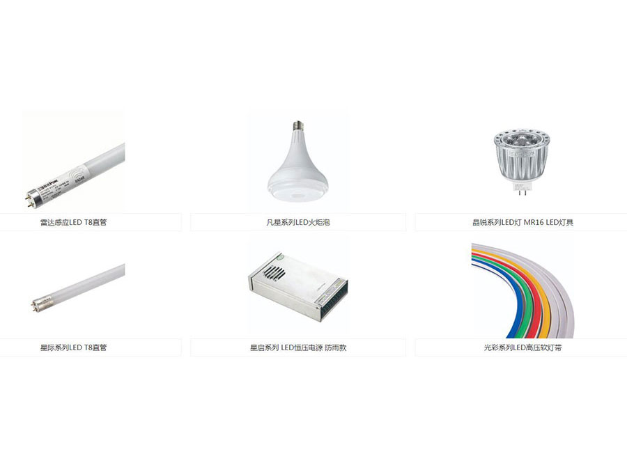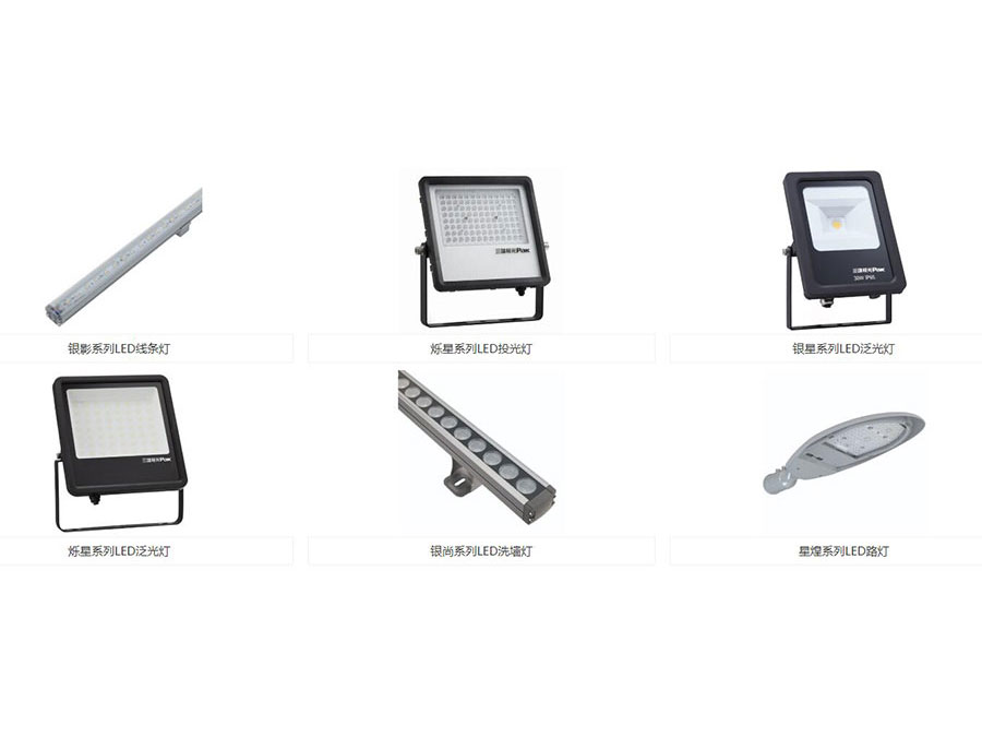 主要产品:三雄极光Pak品牌下的LED灯具、荧光灯等(包括光源电器、家居照明、商用照明、工业照明、户外照明、开关插座、集成电器等产品)
