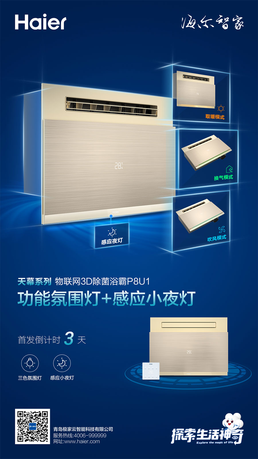 主要产品:海尔智能浴霸,吊顶等系列产品