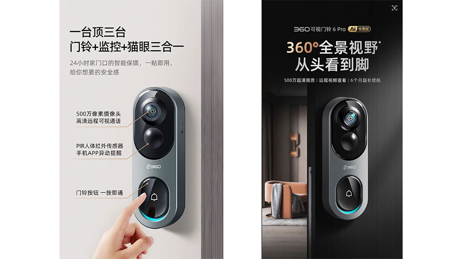 360智能摄像机、360行车记录仪、360儿童手表、360路由器、360可视门铃、360扫地机器人等通过360家庭安全大脑核心赋能,具备三大核心能力:让中坚力量感“安全、安心、安康”的安全能力,让终端设备“能看、能聊、能动”的AI能力,以及让“多设备、多场景”连接互动的云端大数据能力,上市以来深受行业及消费者好评。