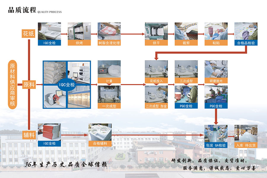 万善美耐皿从进料到成品,制定了一套标准作业流程,保证了产品的优良性,满足客户的需求,符合各种国际标准。新引进的电脑控制程序,运用在产品成型过程中,保证了产品从原料到成品的过程中产生化学反应的有毒物质能够完全散发,确保到消费者手中的产品是安全的。