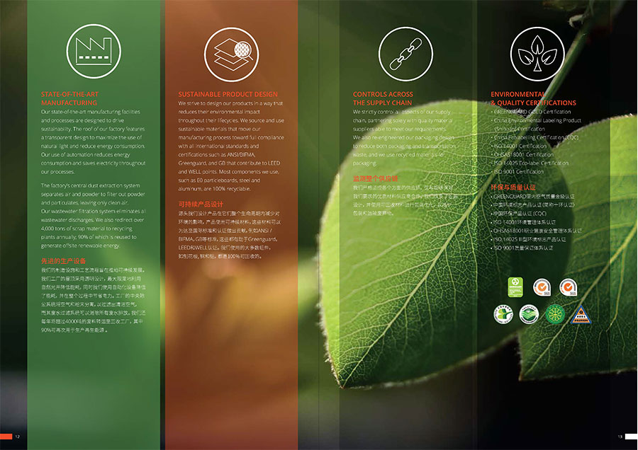 美时致力于通过持续快速改进的方法,成为以可持续发展为原动力的办公方案提供者和合作伙伴。除了“绿色”、“环保”,美时以更广阔的视野看待社会、环境和经济的和谐发展。美时一直以产品生命周期的思维开发产品,努力减少产品对环境的影响,更高效地利用原材料及尽可能减少包装和运输废料。