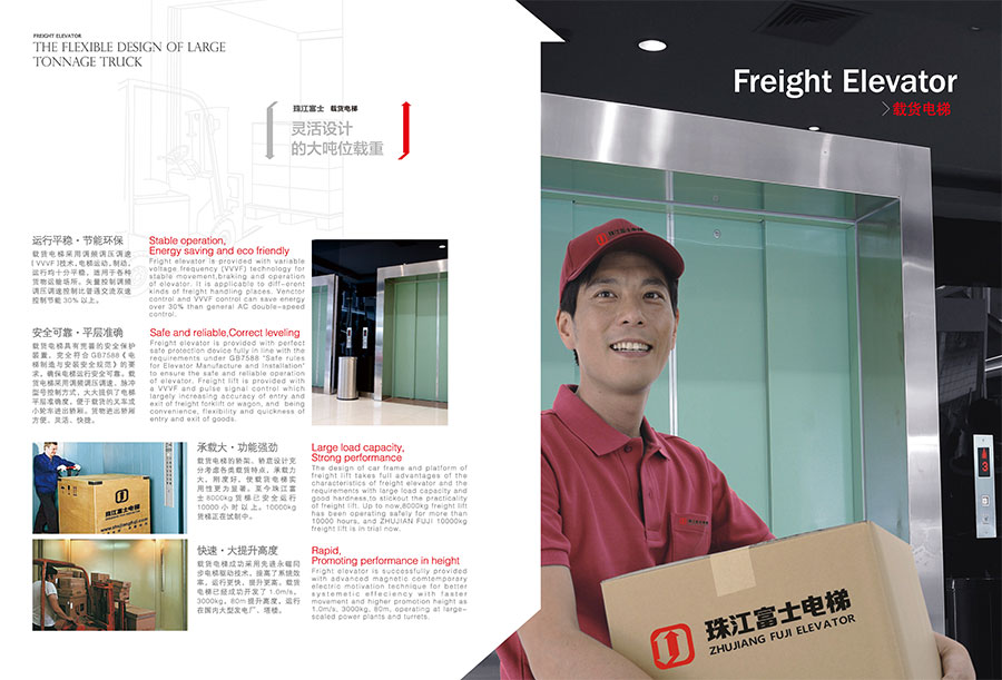 主要产品:珠江富士乘客电梯、载货电梯、自动扶梯、医用电梯、担架电梯、加装电梯、别墅电梯、DIY电梯