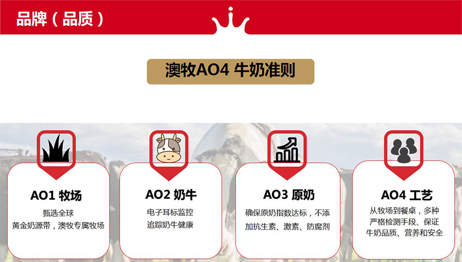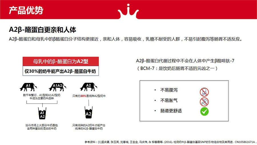 特:多款产品源自珍贵的纯种A2奶牛;A2β-酪蛋白,亲和人体,更易吸收。