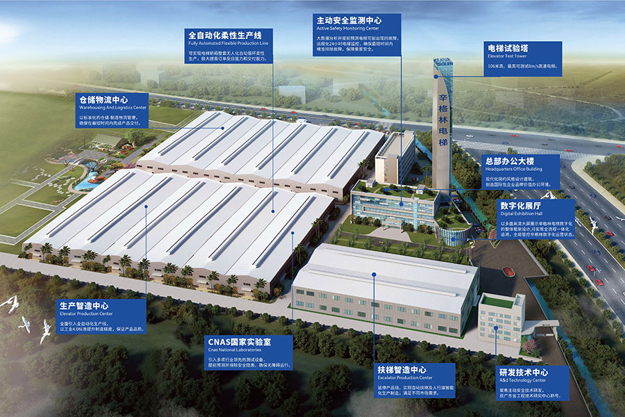 2012年,辛格林电梯正式在中国佛山创建大规模的智能化工业园,该公司坐落在广东省佛山市三水区乐平镇智信大道2号。园区内现设有现代化的总部办公大楼、大规模的制造中心以及国家级科研实验室,并拥有一座106米高的电梯试验塔,该试验塔最高可测试8m/s的高速电梯,为辛格林电梯的技术研发与测试提供了坚实可靠的平台。