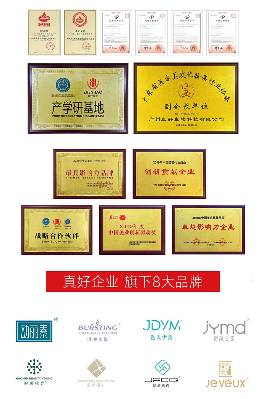 真好公司经过13年的专业高效经营运作,目前已经拥有核心技术和多项专利,还有两个自主的生产基地!这都是以药品、医疗器械、护肤品等产品的生产、科研、销售于一体的综合制药公司,按照欧盟GMPC生产质量管理体系生产,拥有SGS证书和众多先进制造设备与检测仪器,真好企业旗下更是拥有8个抗衰的大品牌。
