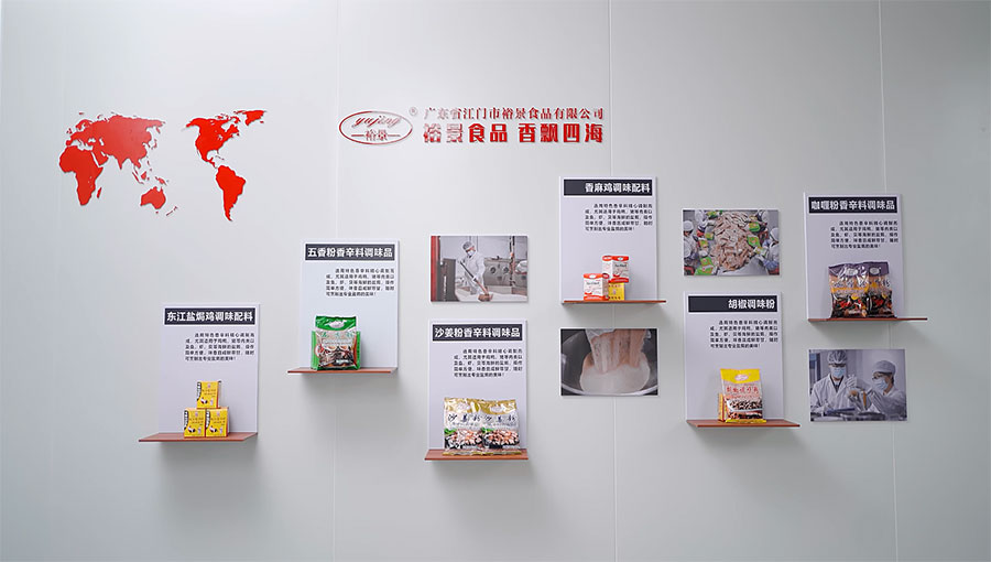 主要产品:胡椒粉、五香粉、沙姜粉、咖喱粉、芥末粉、八角粉、花椒粉、南姜粉、香茅粉、陈皮粉、小茴香粉、芫茜粉、甘草粉、丁香粉、蒜香粉、桂皮粉、黄姜粉;东江盐焗鸡、香麻鸡、香麻油、味精等