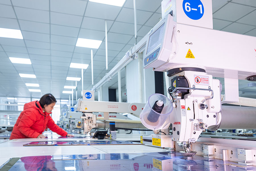 江苏苏美达轻纺国际贸易有限公司始终坚持不断学习,稳中求进的方针。不断地了解行业中的新动向,学习相关产品的新技术,不断更新主流的新设备。到2018年为止,国内外自有实业工厂设备已经超过12000台,全部为国际一线品牌的。同时轻纺公司技术方面也不断提升,已经熟练掌握了无缝贴合,超声波缝制等新型工艺。