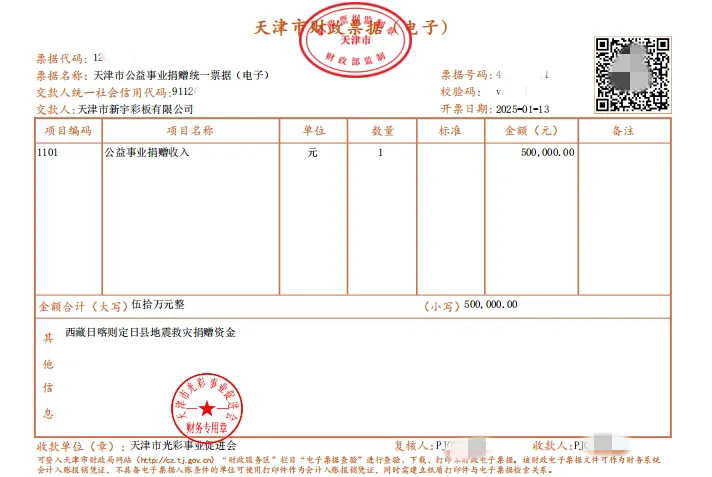 天津新宇捐赠50万元驰援西藏日喀则市定日县抗震救灾