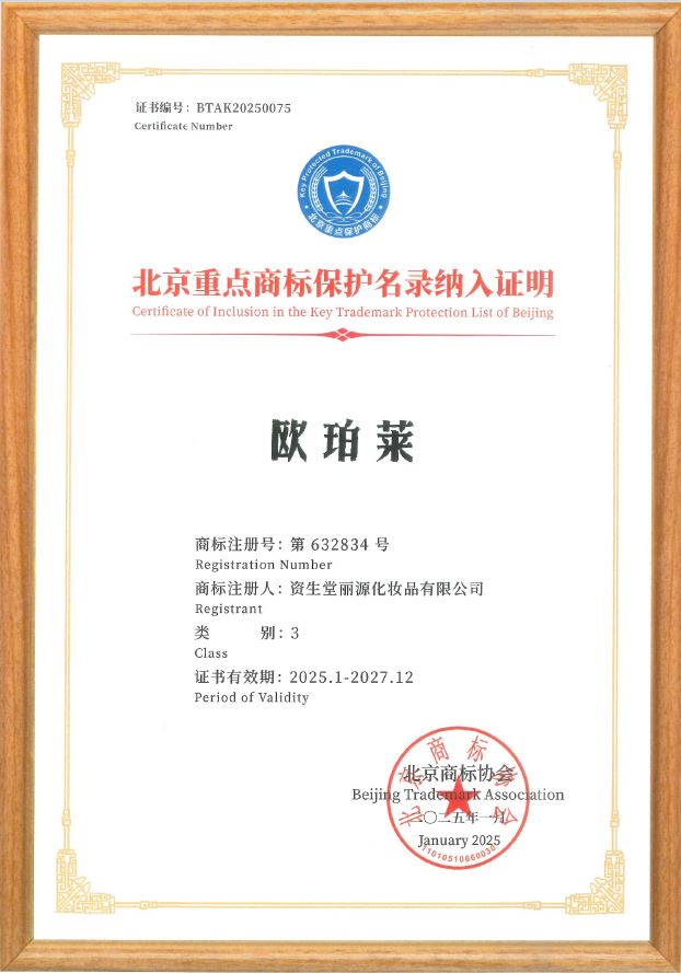 资生堂丽源化妆品有限公司(以下简称资生堂丽源)在商标保护方面取得重大成就。其第632834号中文商标“欧珀莱”荣登首批《北京市重点商标保护名录》,有效期自2025年1月至2027年12月。这一荣誉不仅凸显了资生堂丽源在商标保护领域的专业能力,也为“欧珀莱”品牌提供了坚实的法律保障。