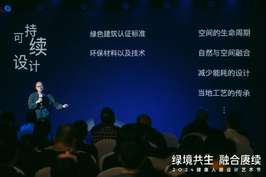 “可持续设计需要更广的视野与思考。”建筑师郑东贤先生以此为引,分享了他对可持续设计的独特理解。郑东贤认为,设计师需要回归原点,重新审视“发展”在可持续发展中的真正含义。他提出,可持续设计不仅仅是选用环保材料和减少能耗,更重要的是延长空间的生命周期,将建筑与自然和谐相融。
